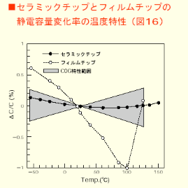 또한 이 제품은 정전기, 정전용량온도특성, 직류파괴 전압등의 특성이 필림 칩에 비해서 아주 뛰어난 것을 알수 있다. 그림 15, 16, 17의 정전기시험결과, 정전용량온도특성의 비교, 직류파괴전압비교를 한 것이다. 이 제품의 큰 특징의 하나로서 고온부하수명에 대해서 신뢰성이 높은 것을 들 수 있다.