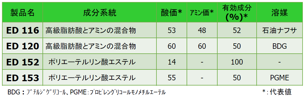 음전하를 가지는 비극성(소수기) 부분을 가지며, 비수계의 분산제로서 도료에서는 가장 많이 사용되고 있다.범용성이 있는 수지나 용매와의 친화성이 좋고 부작용도 적다는 등의 특징이 있다.