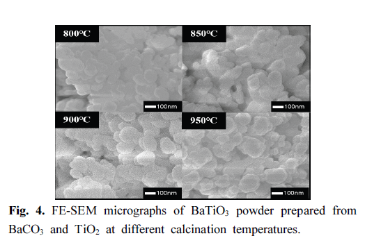 R. Ashiri는 BaCO3와TiO2를 mechanical activation을 적용한 후 고상반응법을 이용해 낮은 온도에서 나노 크기인 BaTiO3를 만들었다. J. L. Clabel H et al. 연구팀은 밀링시간과 열처리 온도가 BT의 표면 구조에 미치는 영향을 연구했다 . T. Hoshina는 BT의 particle size가 유전율에 미치는 영향과 BT의 결정립 크기(grain size)가 유전율에 미치는 영향에 대해서 연구를 했다. 결정립 크기에 따른 유전율의 변화는 domain wall 거동으로 설명된다.