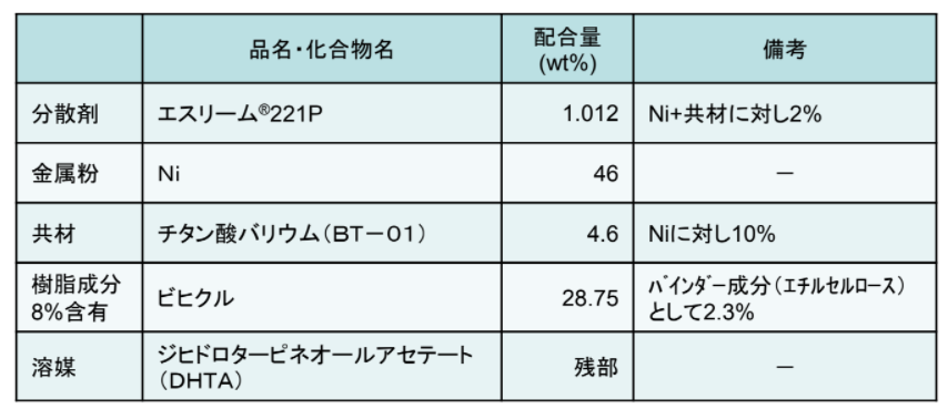 에슬림®221P를 Ni페이스트 조제 분산제로 사용했을 경우, 점도는 저하되고 칙소트로픽한 점탄성을 가집니다. 또한 시간 변화에 따른 증점이 없으며 균일성도 높아 공재의 들뜸이 없습니다.