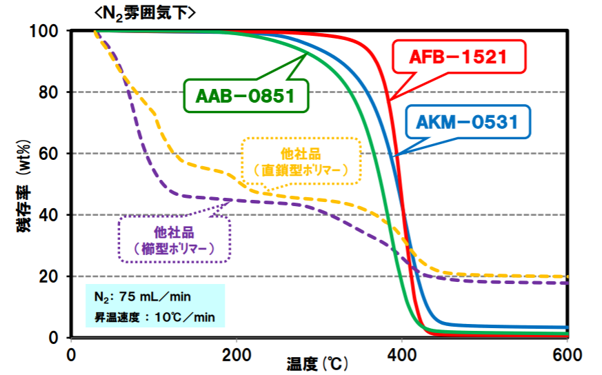 ◆ 공기 및 질소 분위기하 모두, 양호한 열분해성을 나타냅니다.t