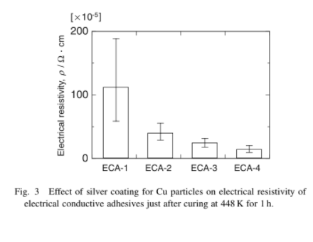 (Cu-Epoxy)Effects of Silver Coating Covered with Copper Filler on Electrical Resistivity of Electrically Conductive Adhesives