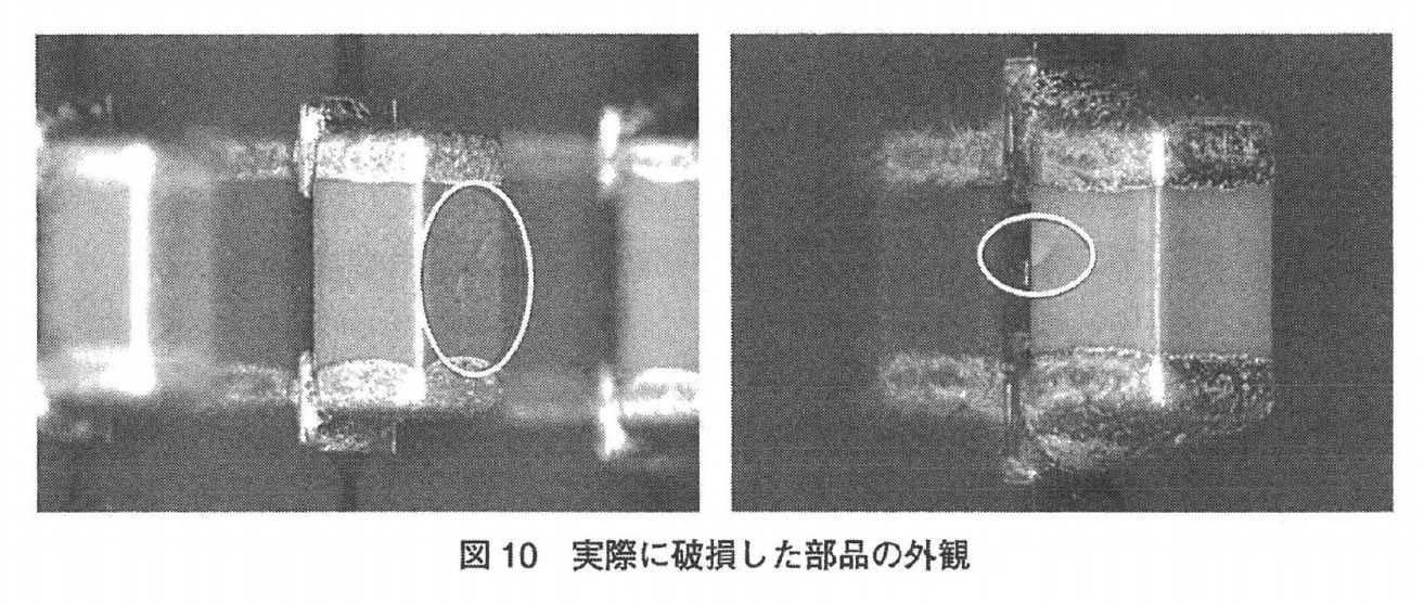 지금까지의 Z축 방향 압입량의 설정 (일반적으로는 기판 0 위치에 대해 ±0.3mm압입) 으로 실장 할 경우, 탑재하는 시점에서 부품을 파괴할 위험이 높다. 그림 10은, 필자의 실험 시에 발생했던 부품 파손의 예시이다.