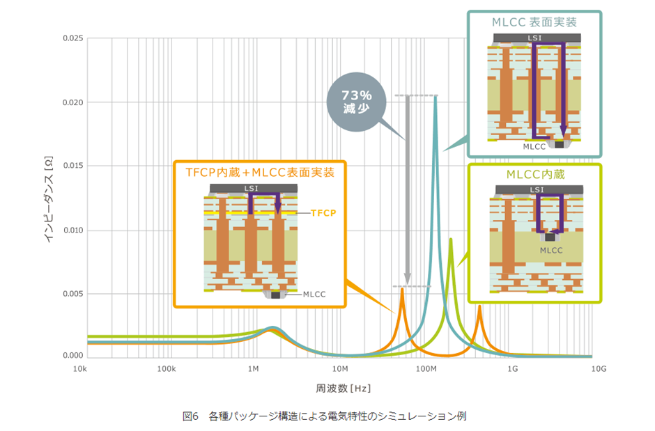 LSI 직하의 기판 내장으로 디커플링으로 임피던스를 약 73% 저감