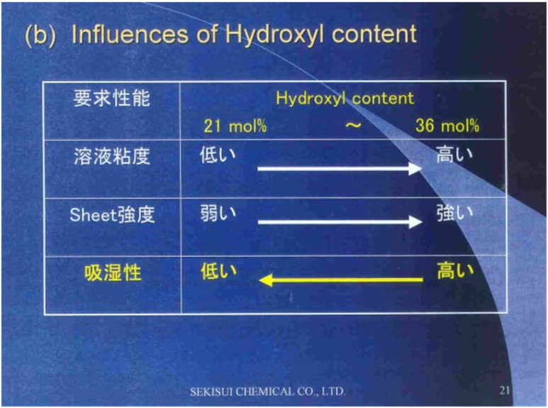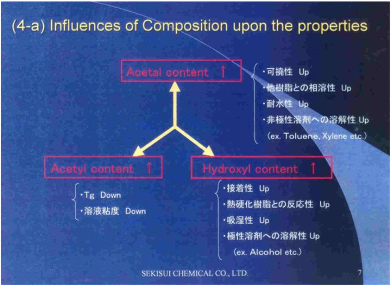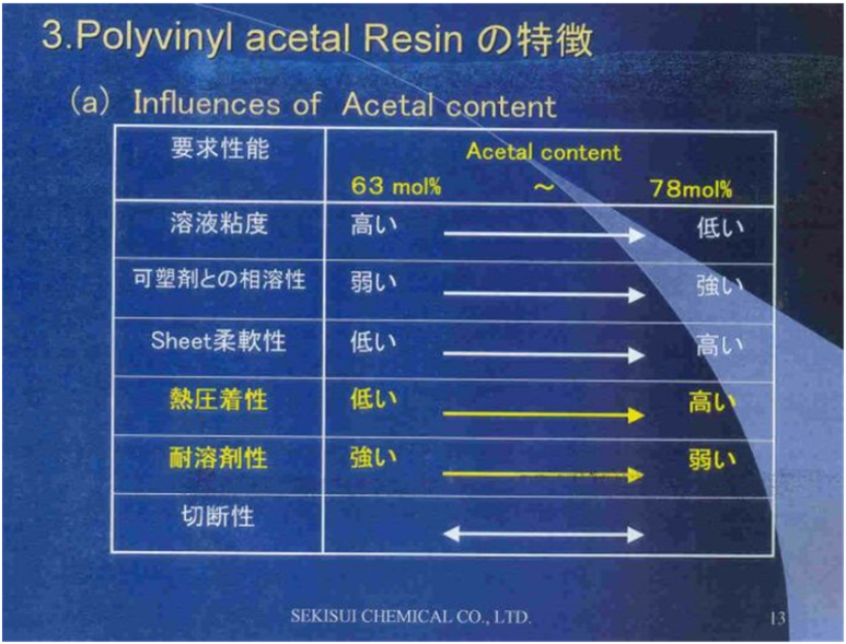 아세탈기의 함유량이 높으면 시트의 유연성과 열압착성이 높다