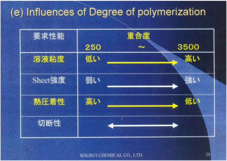 중합도가 높을수록 쉬트강도가 높고 열압착성이 낮다