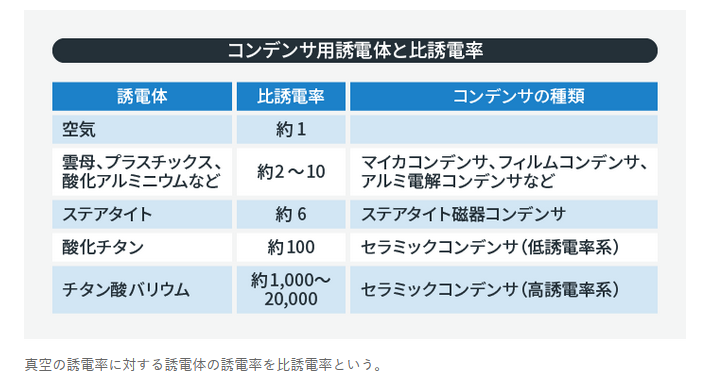 콘덴서용 유전체와 비유전율