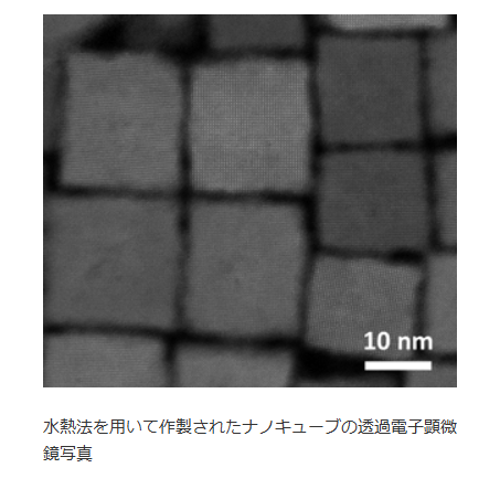 • 고품질 입자: 이 기술을 통해 2012년에 **'나노큐브'**라고 불리는 주사위 모양의 BTO 입자를 합성하는 데 성공했습니다. 이 나노큐브는 변의 길이가 15~20 nm(나노미터)로 매우 작고, 입자 크기가 균일하며, 결정성이 매우 높습니다.