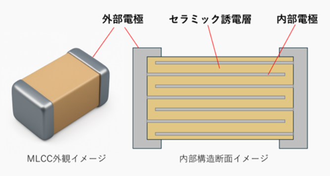 MLCC는 마치 얇은 밀푀유처럼, 세라믹으로 만든 유전체 층과 금속으로 만든 전극 층을 여러 겹 교대로 쌓아 올린 층상 구조를 가지고 있습니다.