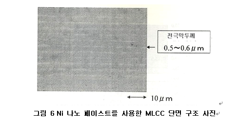 이 MLCC의 소형ㆍ대용량화에는, 당연히 유전체 박층화가 중요하며 현재 그 두께는 1.0㎛까지 박층화되고 있다. 그것과 비교해 전극막 두께의 박층화는 유전체 두께와 비교해 스피드가 늦고, 신뢰성을 고려하면 양산 레벨에서 1.0㎛ 전후 두께가 한계라는 것이 현재의 수준이다.