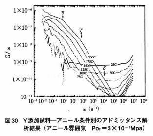 한편 완화시간은 Y2O3첨가에 의해 장시간화하는 경향이 있다. 이는 시료중의 결함의 이동이 늦어졌음을 의미하며 Y2O3첨가에 의해 산소공공의 migration이 늦어지기 때문에 장수명화하는 모델과 일치한다.