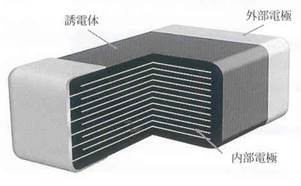 MLCC(multy Layer Ceramic Capacitor)은 그림 1에 나타낸 것과 같이 유전체층과 내부 전극이 서로 교차하여 적층 된 구조를 가지고 있으며, 높은 것은 800층을 넘기도 하는 집형 콘덴서이다. 용량밀도는 최근 10년간 2자릿수 성장을 계속하고 있으며, 소형・대용량화가 진행되고 있다. 지금도 이러한 경향은 지속되고 있으며, 유전체・내부 전극의 복층화, 다적층화의 경향을 보인다. 현재, MLCC 유 전체 두께는 얇은 것의 경우, 1㎛ 이하의 것도 일부에서는 상품화되고 있다.
