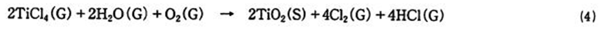 염소법의 공정은 3N에 정제된 TiCl4와 순수를 기화기를 이용해 기화시킨 후 예열을 하기 위해 N2가스를 예열로로 보낸다. 그리고 고순도 O2가스도 별도 예열로에 보내 버너로 태운다. 반응식은 이하와 같다.