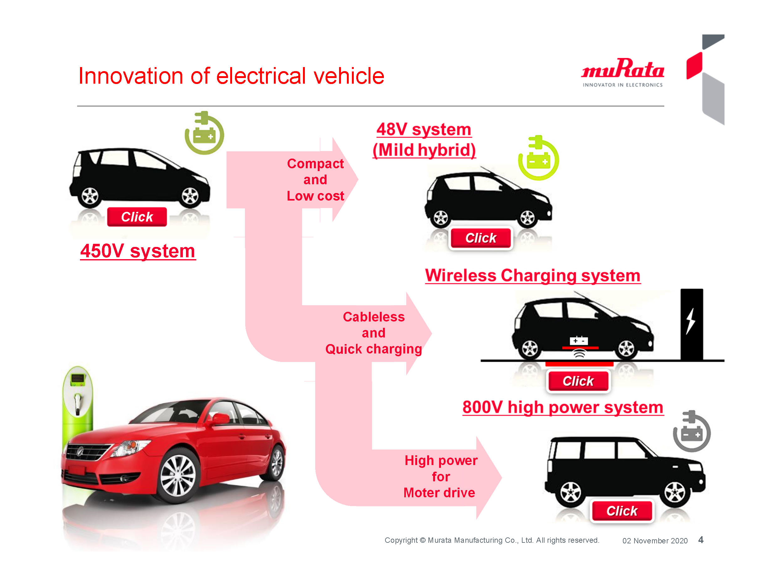 전기자동차의 전원은 주행거리의 장거리화, 무선충전 등을 위해 고전압화된다