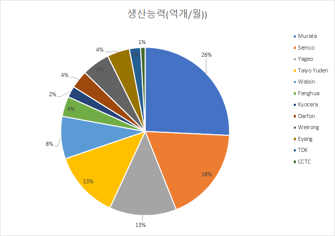 중국업체까지 포함하면 수량으로는 삼성전기의 시장점유율은 20%이하가 됩니다만 금액으로는 ???